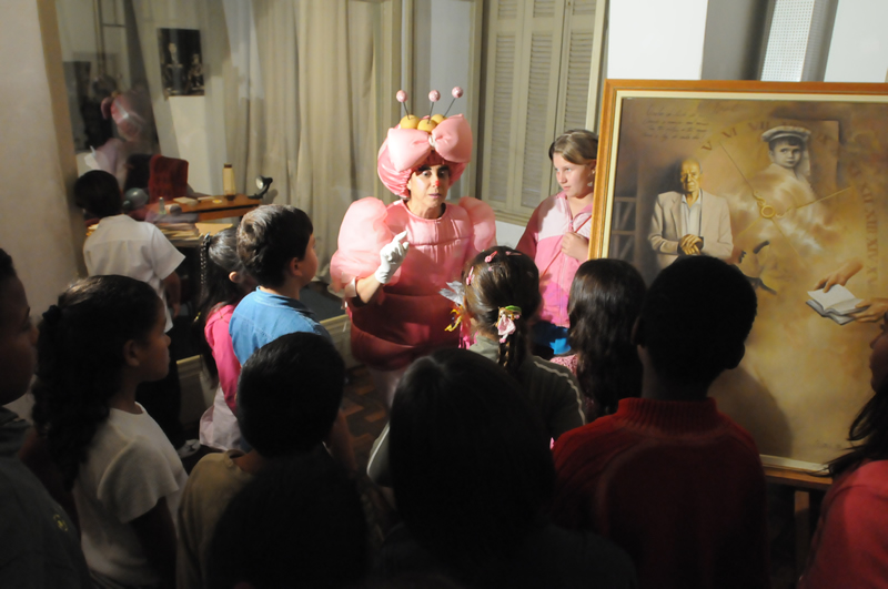 desenvolve a visita guiada para estudantes na Casa de Cultura