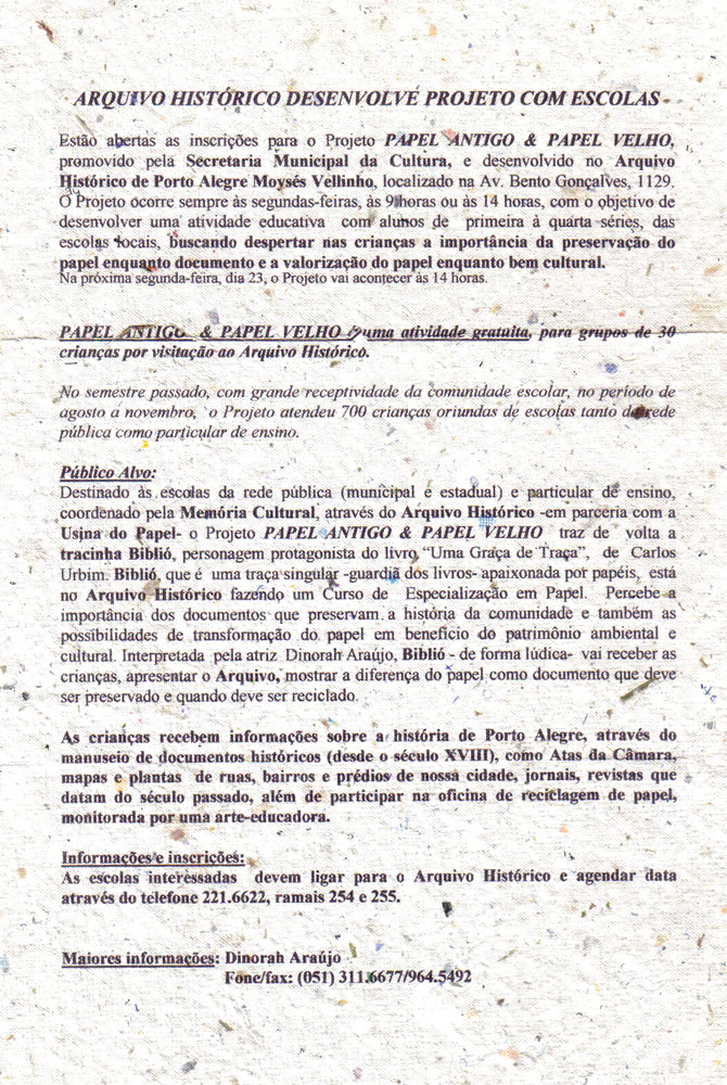 do trabalho desenvolvido no Projeto Papel Antigo & Papel